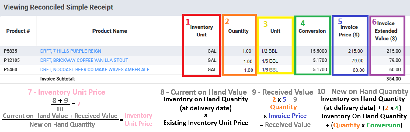 Combines with the conversion to calculate the individual Inventory Unit Price.